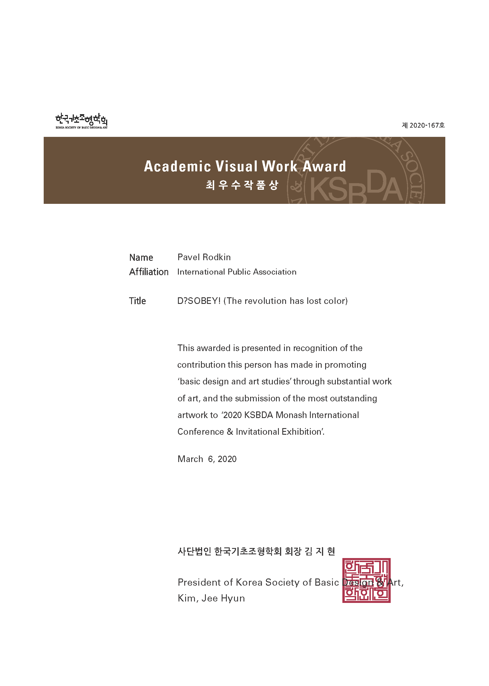 KSBDA Monasch International Conference & Invitation Exhibition. Academic Visual Award (2020)