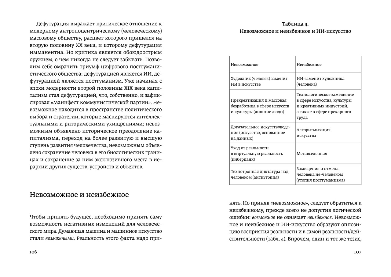 Исследование критически анализирует феномен ИИ-искусства (Artificial intelligence art) и отвечает на ряд принципиальных вопросов, которые становятся актуальным содержанием теории искусства и дизайна, а также культурной политики цифрового общества XXI века. Искусственный интеллект в искусстве рассматривается как фундаментальный вызов всей сфере человеческого творчества, которое до сих пор считались «непреодолимым» для автономных не-человеческих акторов. ИИ-искусство проблематизируется в контексте культурной ситуации постгуманистического сдвига. В противовес мейнстримной позиции ИИ-искусство определяется как слабое искусство.