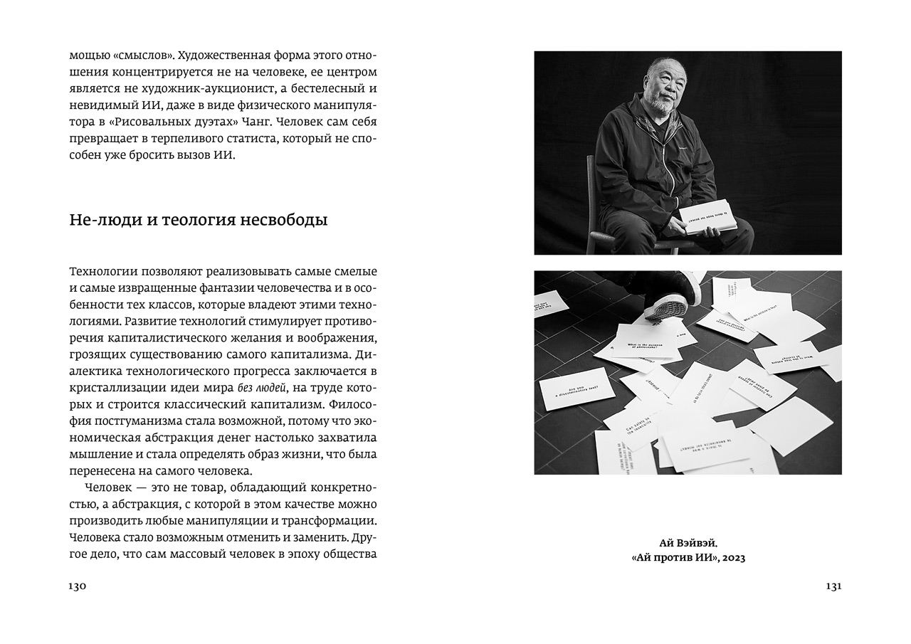 Новая книга Павла Родькина не похожа на все предыдущие, в ней автор размышляет над будущем искусства в контексте постгуманизма, в ситуации, которая только наступает и влияет на трансформацию социо-культурного пространства и коммуникаций в нем. Философские надстройки «пост» и «мета» не дают ясности понимания происходящего, а только усугубляют проблемы производимости и воспроизводимости искусства. Павел Родькин задает один из главных вопросов современности. Является ли AI-искусство искусством? Должны ли мы, зрители и критики считать его искусством?